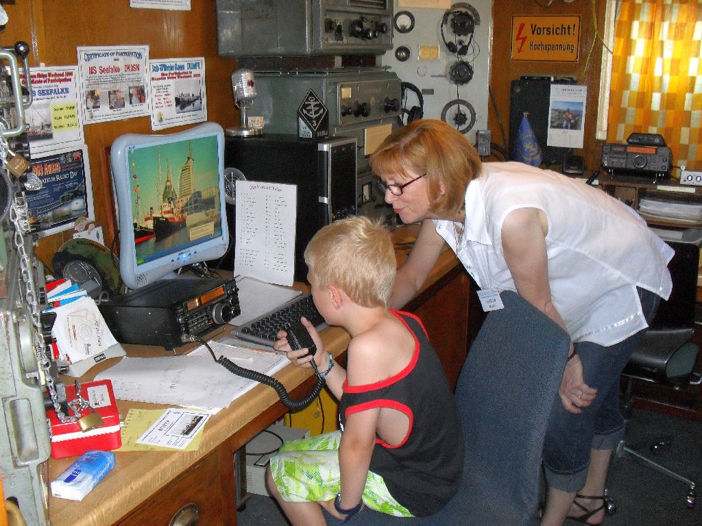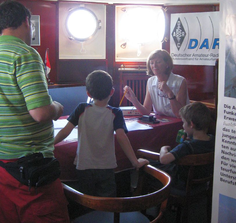 ein, die beim Rundgang im Alten Hafen das DARC-Schild am Eingang zur "Seefalke" entdeckt hatten und sich spontan zur Funkbude auf den Weg machten (Bild 09).
